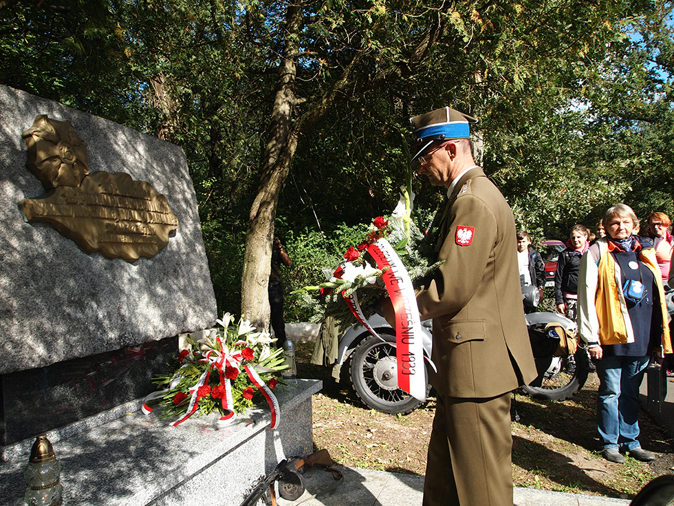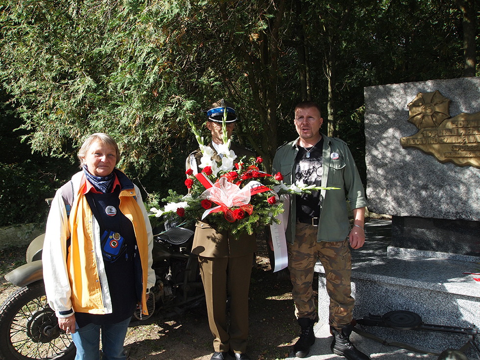 Następnie turyści udali się do Parku Wolności. Przy pomniku 15 pułku piechoty „Wilków” kwiaty złożyli organizatorzy i porucznik Sylwester Janowski z WKU w Łodzi. Młodzież zapoznała się z motocyklami z czasów II wojny światowej, które zaprezentowali motocykliści z Dłutowskiego Klubu Motorowego.